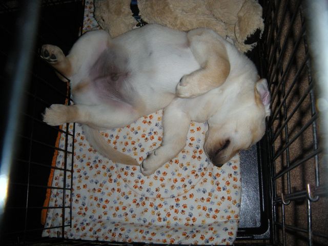 My boyfriend and I picked up our puppy Piper almost a month ago, and the crate has been a godsend. We messed up at first, since she cried all night the first night we took her out and let her sleep where she wanted (she chose the hardwood floor, dogs are weird!). After about a week of that, however, she chewed our drywall while we slept and we realized the crate was necessary. After a few nights of crying (her) and frustration (us) she now sleeps through the night. She’s a Great Pyrenees mix, so she’s big for 12 weeks, which is great because she can now hold her bladder all night and doesn’t wake us up for pee breaks. She’s also mastered sitting and lying down on command, though we’re still working on the “off” command (she keeps jumping up against the counters and table.) Shes also part Catahoula so she’s very vocal and has recently started howling if we crate her while she’s really worked up. Anyway, short version is that I’ve totally made these mistakes but correcting them has been very worth it.