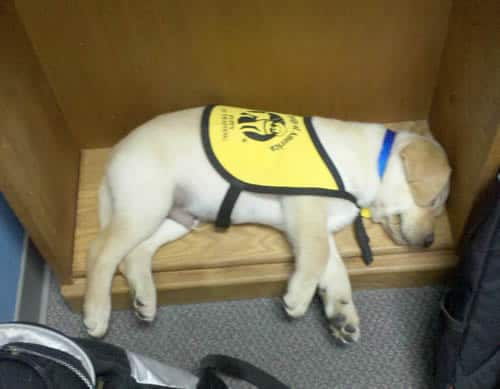 When we bring home our guide and service dog puppies we put on their collars and don’t take them off unless we are working on crate training.
