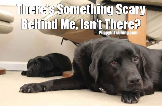 Every time I bring home a new puppy I know Stetson is horrified so to him there truly is something scary behind him.